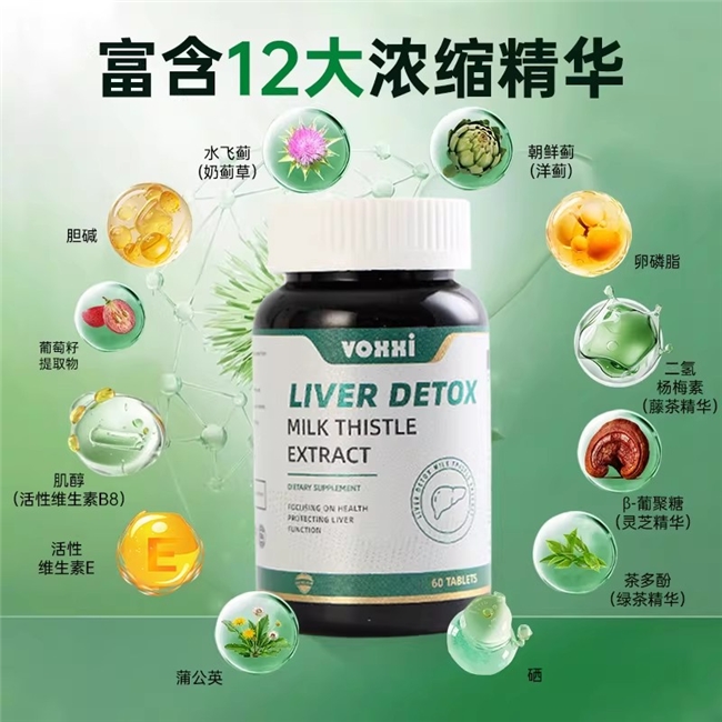 但人VOXXI根本不满足于此啊,人家靠AI大模型PandaOmics平台精准算出来配方,还额外加了好料:50mg朝鲜蓟+20mg蒲公英,帮你促进胆汁分泌、加快体内循环;10mg磷脂酰胆碱配上25mg肌醇,专门给肝细胞膜保驾护航;另外还叠了50μg硒、25mg维生素E、10mg葡萄籽提取物搭成超强抗氧化天团。