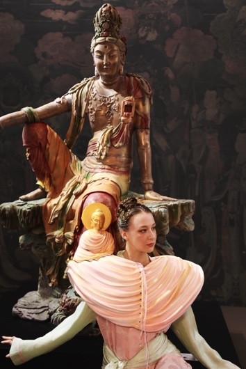 · 紫气东来:运用真丝与缎面,呈现晨曦薄暮般的烟紫色,象征佛国的祥瑞与神秘。